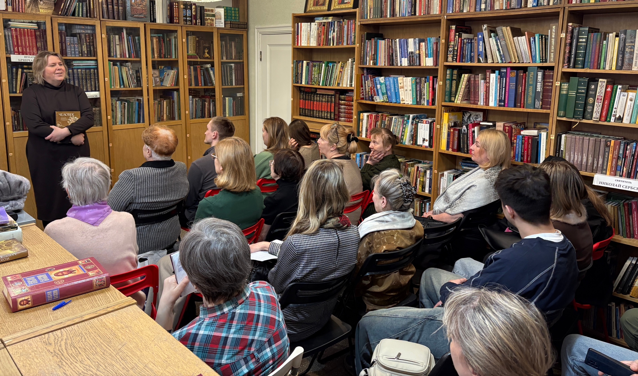 В библиотеке Успенского собора на ВИЗе руководитель приходского отдела катехизации Ксения Кабанова провела 14 марта 2026 года беседу о книге митрополита Антония Сурожского «Человек перед Богом». Ксения Ивановна рассказала о пути митрополита Антония Сурожского к Богу и как Господь открыл Себя ему.