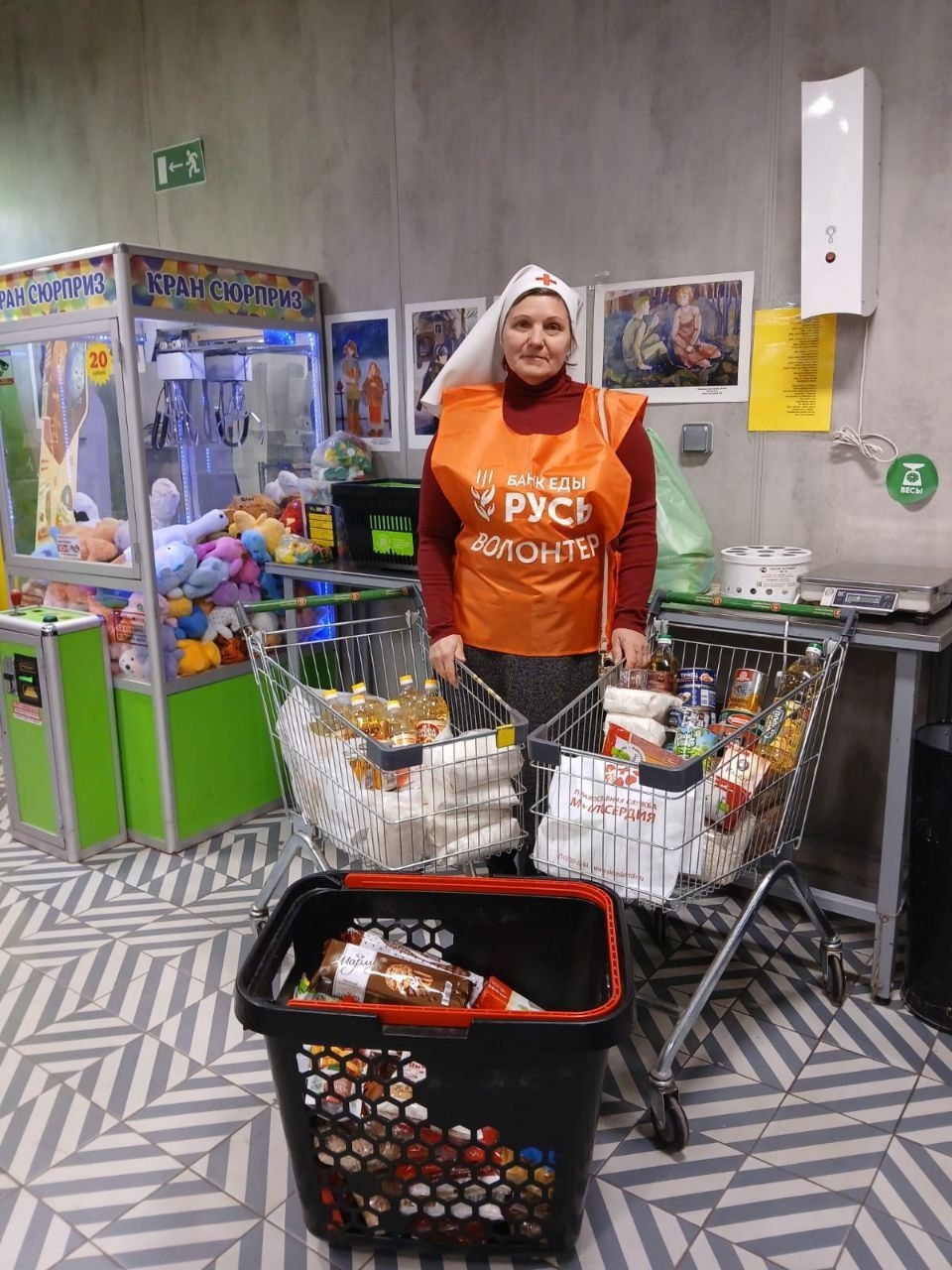 Сестры и добровольцы Православной Службы Милосердия отдела социального служения 20 марта с 16.00-20:00, 21 марта с 12:00-18:00 будут ждать вас с корзинами, куда после оплаты можно будет пожертвовать продукты питания длительного хранения: муку, консервы, чай, сахар.