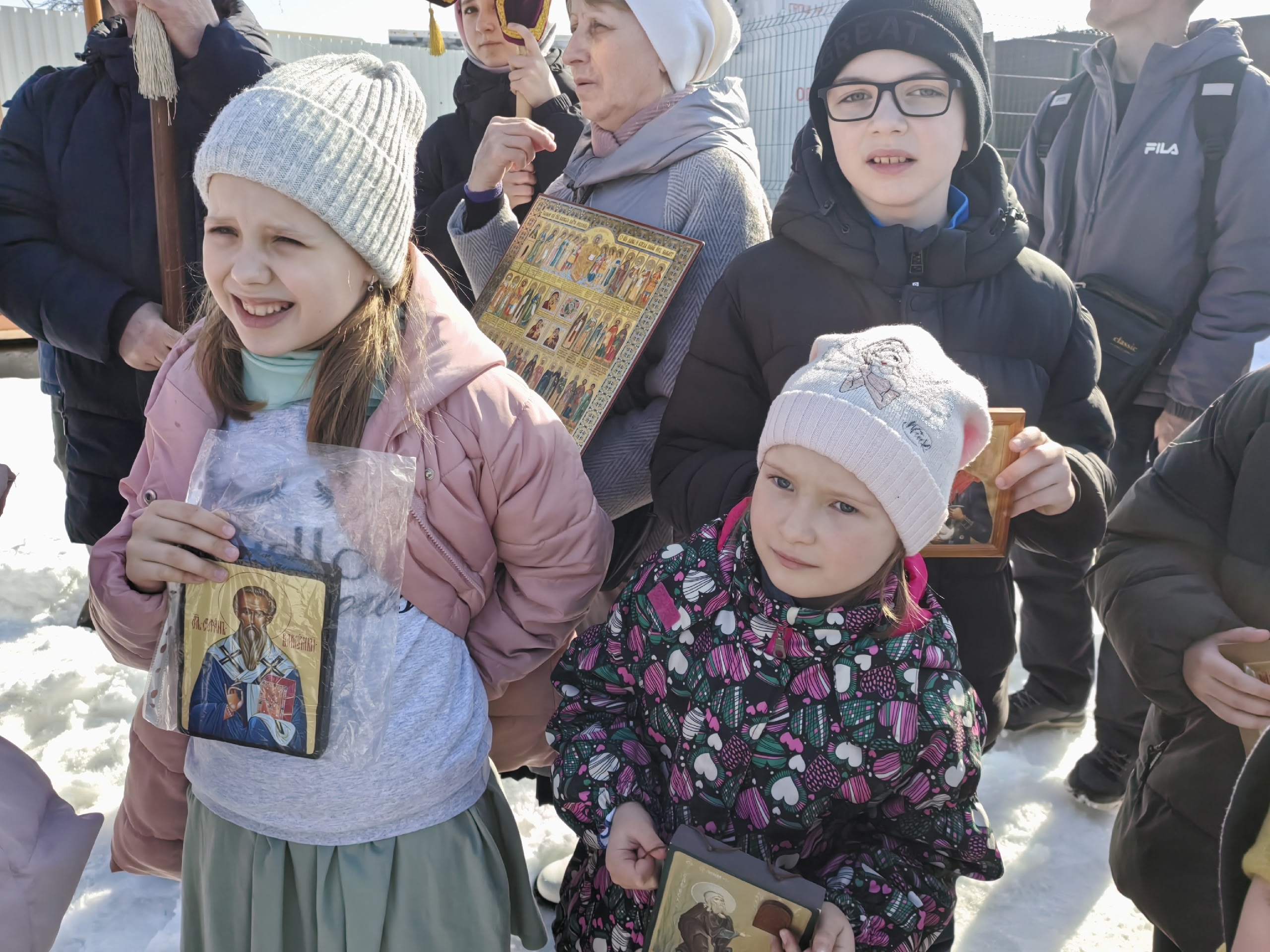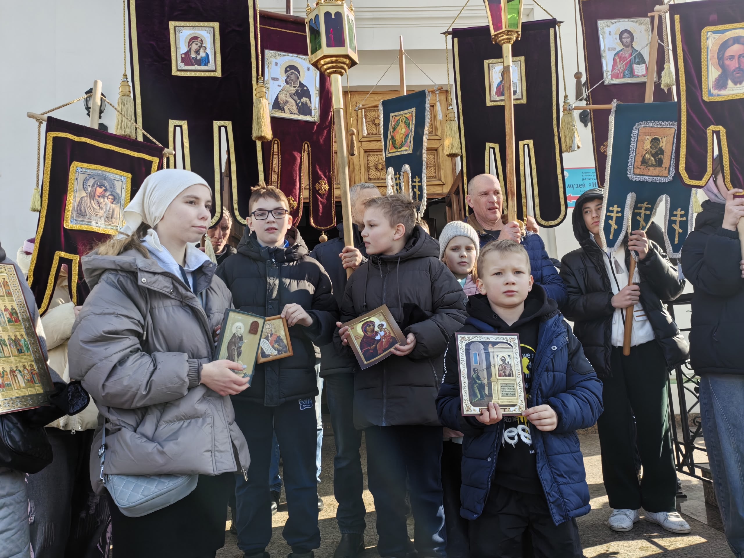 Особую торжественность шествию придало участие детей-хоругвеносцев, несущих знамения победы Христовой — образы Спасителя и Божией Матери.