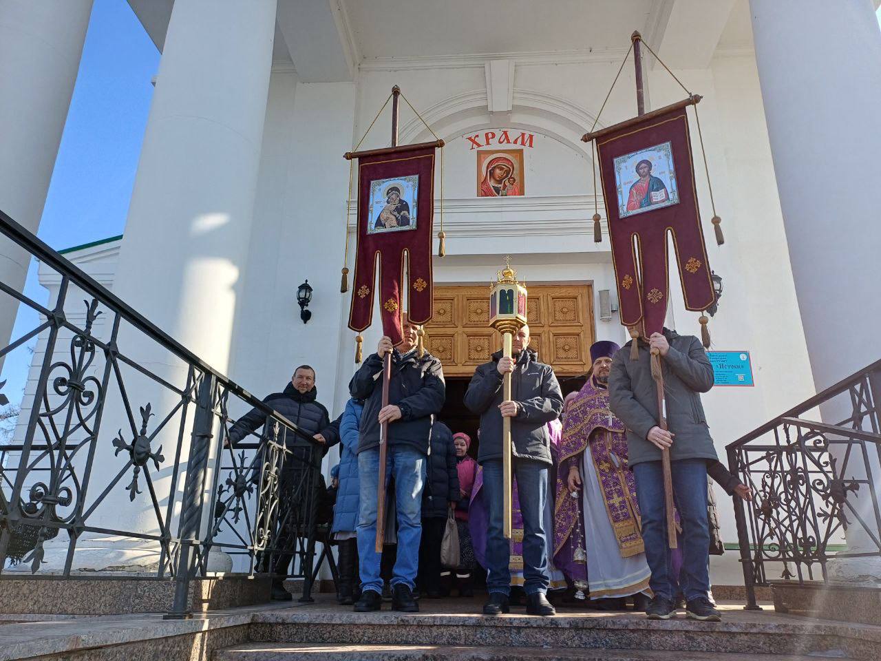 Крест-мощевик будет пребывать в Казанском храме всю неделю. В воскресенье – Неделю четвертую Великого поста – Крест будет возвращен «ответным» крестным ходом.