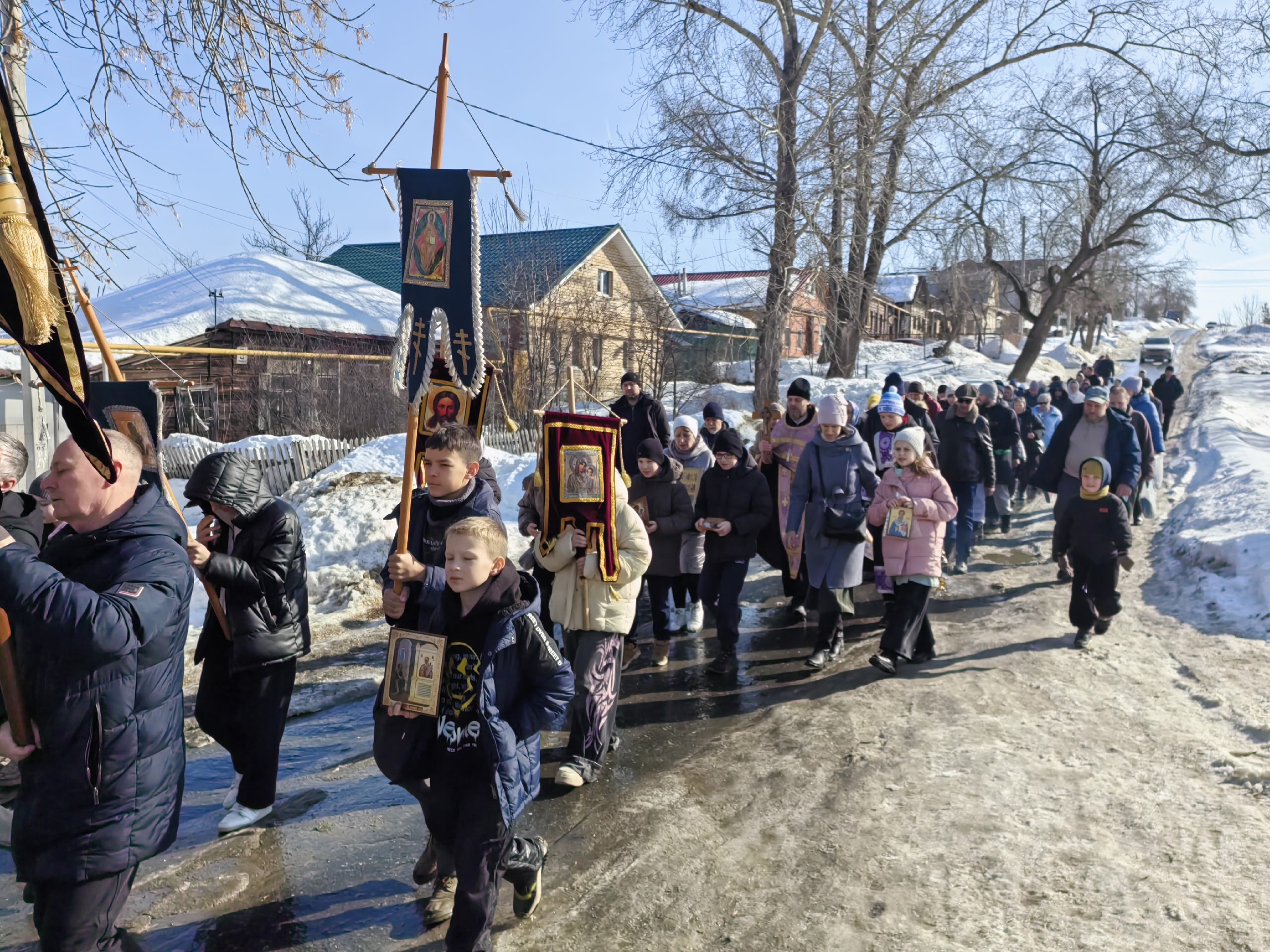По сложившейся традиции, в Неделю Крестопоклонную, 15 марта 2026 года, прихожане храма святителя Стефана Великопермского города Екатеринбурга совершили особое шествие — крестный ход по микрорайону Химмаш до храма Казанской иконы Божией Матери, чтобы привнести в соседний Казанский храм святыню, хранящуюся в Свято-Стефановском храме. Центральной святыней шествия стал крест-мощевик с частицами 34 святых угодников Божиих.