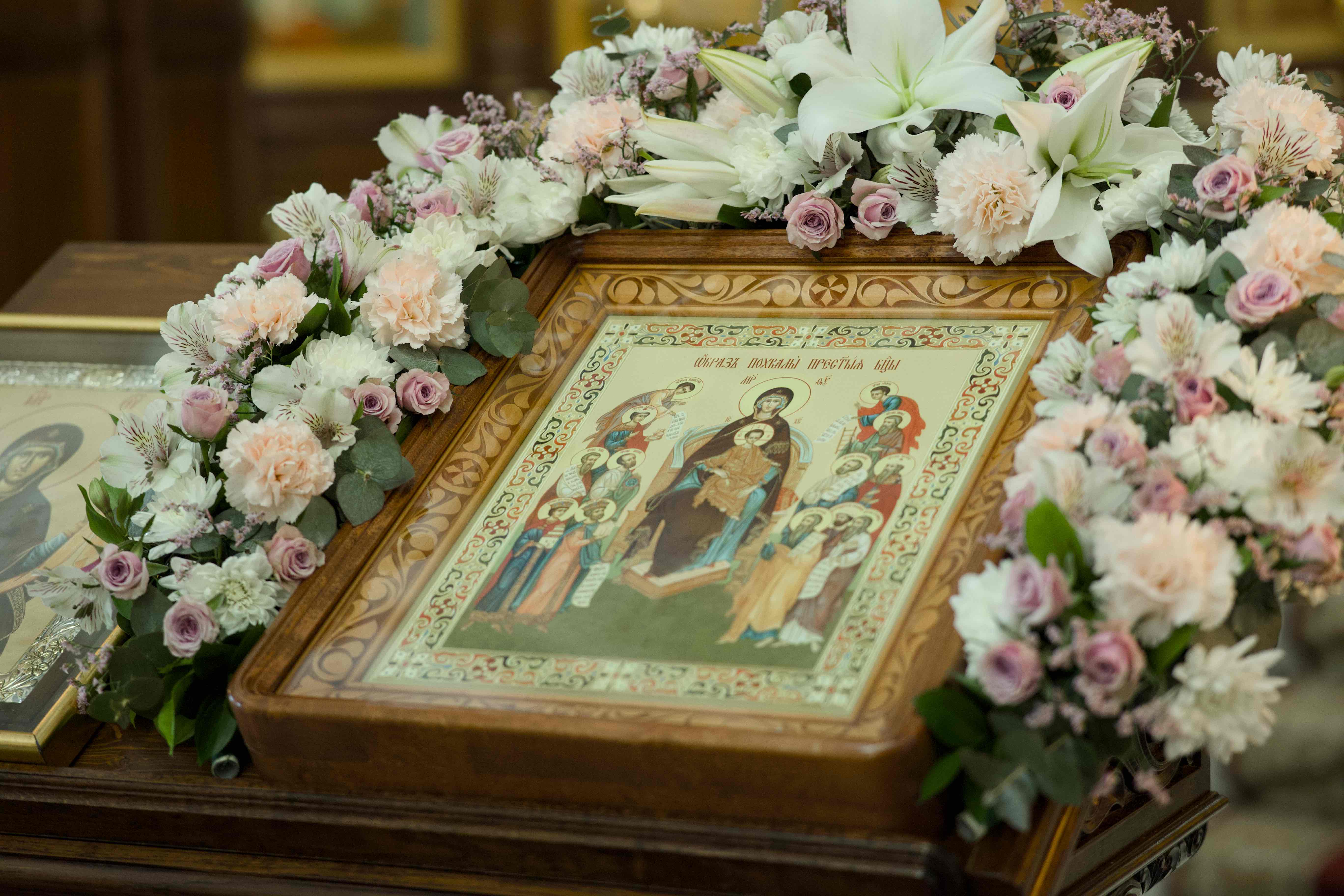 «Взбранной Воеводе победительная, яко избавльшеся от злых, благодарственная восписуем Те раби Твои, Богородице; но, яко имущая державу непобедимую, от всяких нас бед свободи, да зовем Ти: Радуйся, Невесто Неневестная», – кондак, открывающий Великий акафист, звучал торжественно и величаво на протяжении всего богослужения пред соборными иконами Пресвятой Богородицы, искусно украшенными в день Ее празднества живыми цветами.