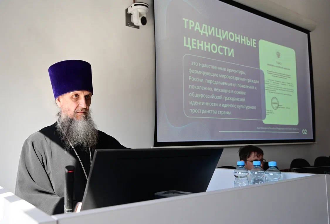 С докладом «Традиционные ценности: 17 +?» выступил заведующий кафедрой теологии Горного университета, руководитель отдела по утверждению трезвости и профилактике зависимостей Екатеринбургской епархии, кандидат педагогических наук протоиерей Игорь Бачинин, представив свою концепцию сохранения и укрепления традиционных российских духовно-нравственных ценностей.