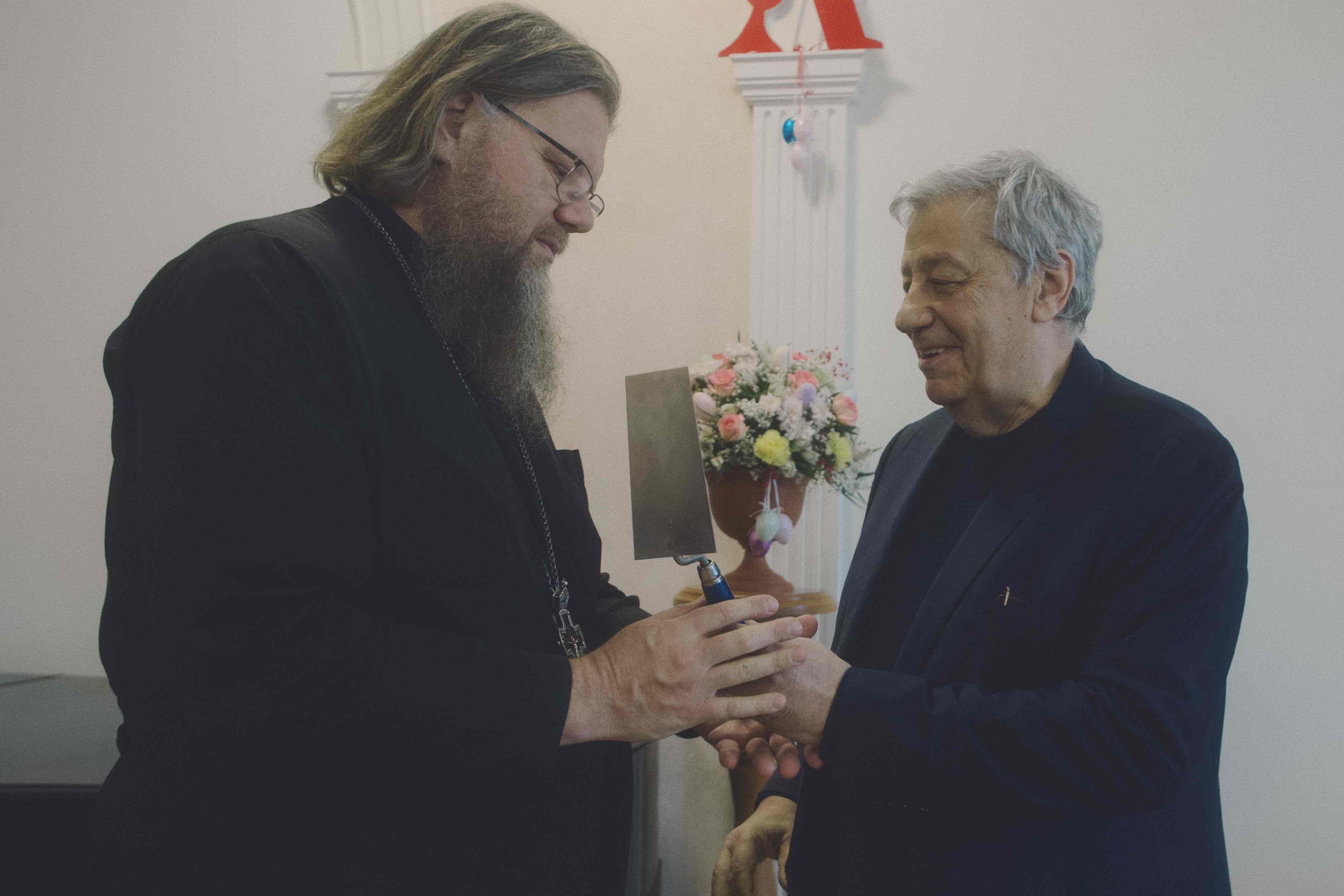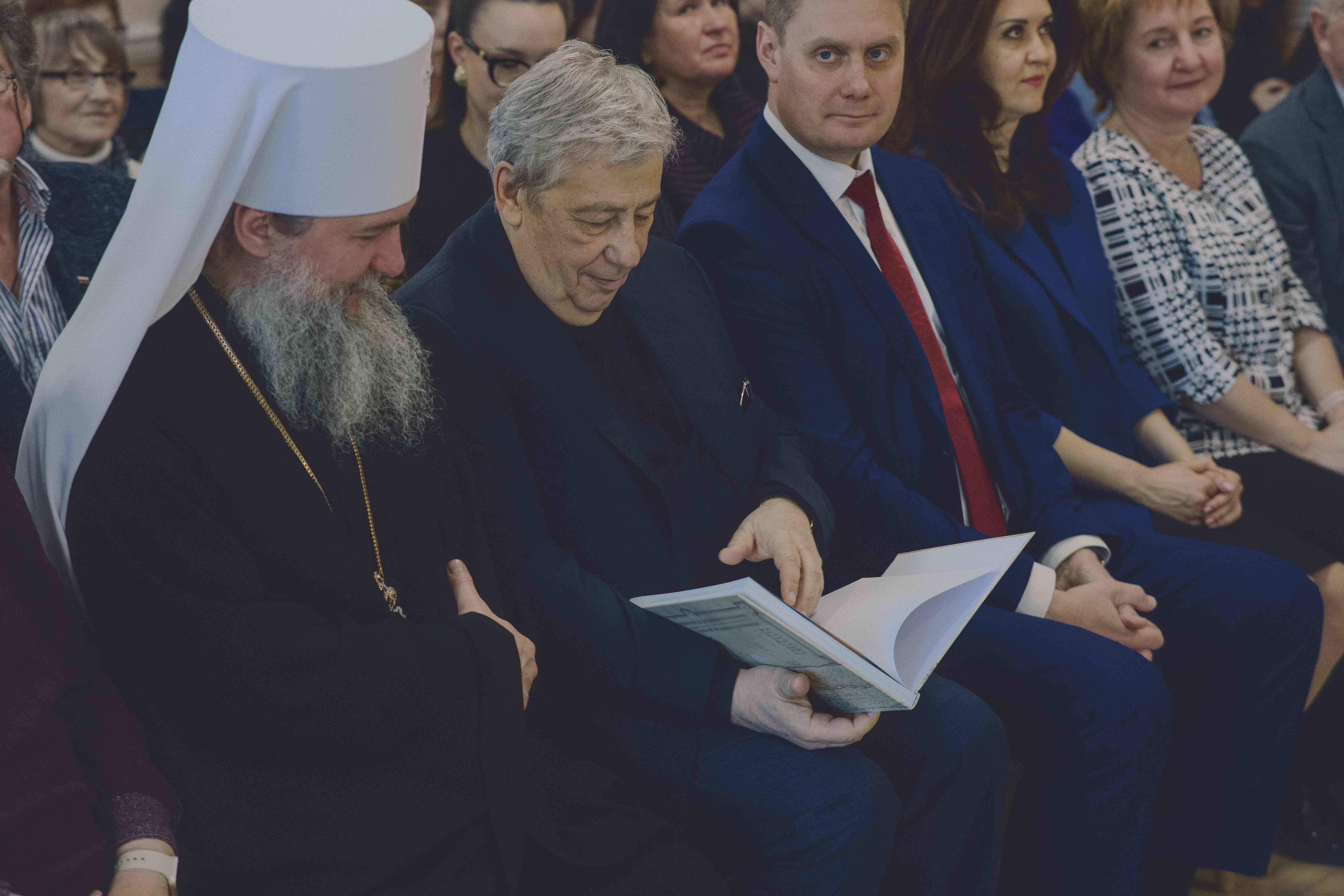 Участников мероприятия, которое объединило два события, поприветствовал митрополит Екатеринбургский и Верхотурский Евгений. Владыка поздравил всех со Светлым Христовым Воскресением, поблагодарил Аркадия Михайловича за сохранение истории города, «за очень ценные воспоминания о бесценных делах, которые были совершены вашим участием» и отметил, что «если не сохранять, если не передавать, то память о прошлом теряется и забывается».