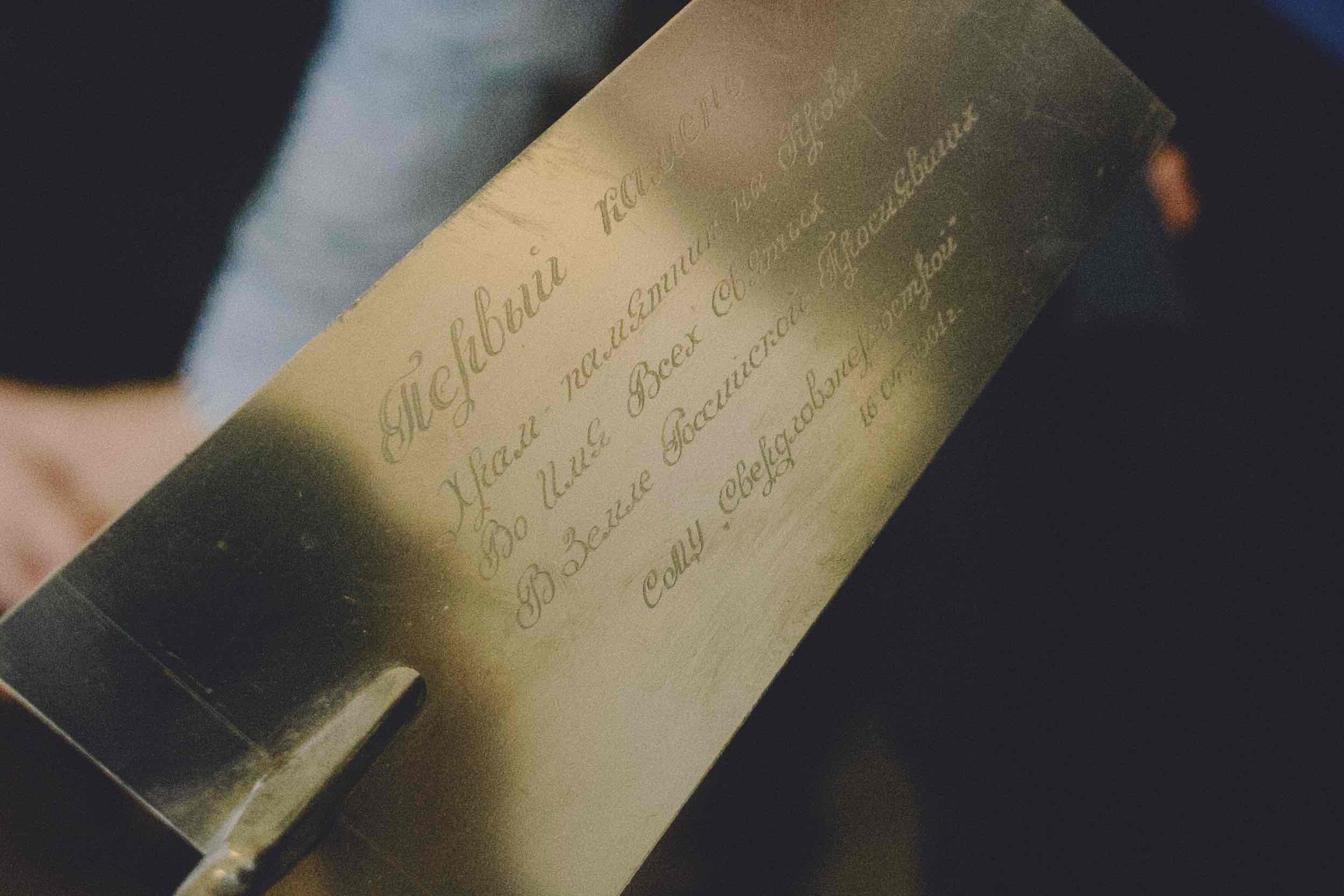 Презентация исторического путеводителя «Крепость Екатерины» совпала со знаменательным событием: ровно 25 лет назад в стены будущего Храма-Памятника на Крови торжественно были заложены первые кирпичи. Первый глава администрации Екатеринбурга, принимавший непосредственное участие в закладке Храма-Памятника на Крови, Аркадий Михайлович Чернецкий поздравил всех с юбилеем постройки Храма и передал в дар Музею Святой Царской Семьи уникальный артефакт — мастерок, которым был нанесен раствор при закладке надземной части Храма.