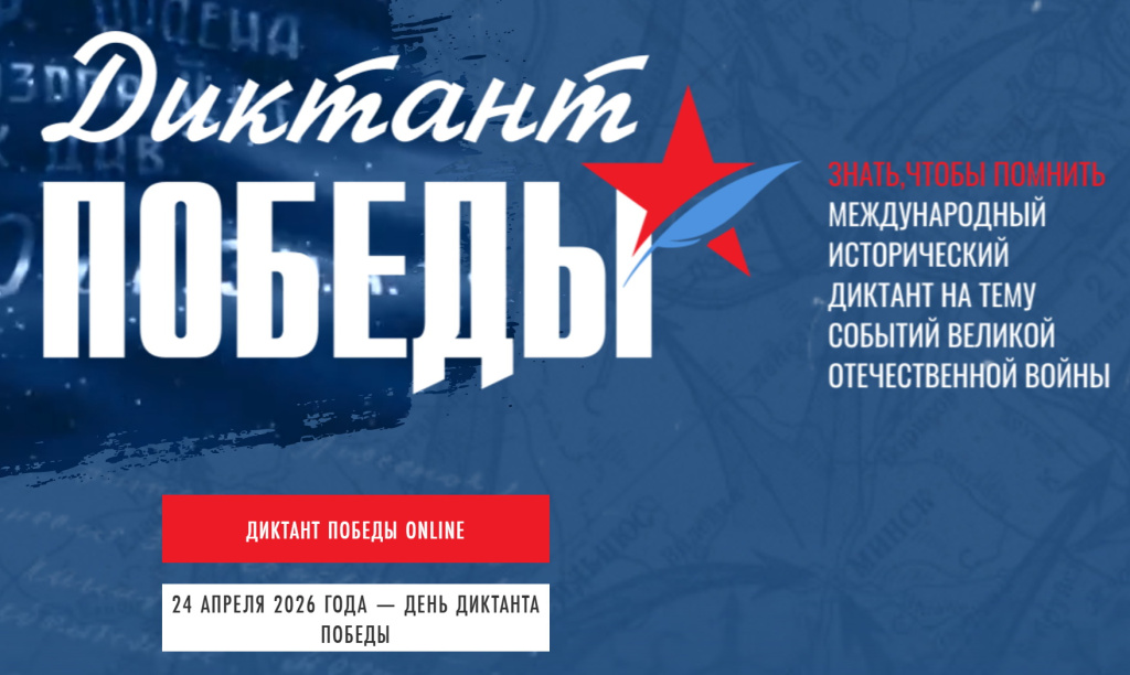 Культурно-просветительский центр «Царский» 24 апреля 2026 года в третий раз примет участие в Международной патриотической акции «Диктант Победы».